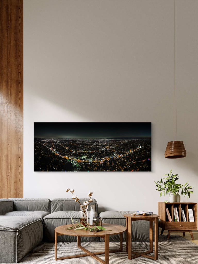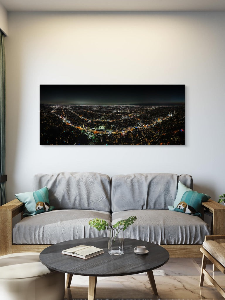 In a home or office setting, this piece adds a bold and captivating focal point, perfect for modern or urban-inspired decor. Its dynamic energy brings the nightscape of Los Angeles indoors, offering a daily reminder of the city’s endless vibrancy and charm. Whether displayed in a living room or an office lobby, "City of Stars" immerses viewers in LA’s iconic nighttime magic, making it an ideal choice for spaces that celebrate both ambition and the allure of city lights.