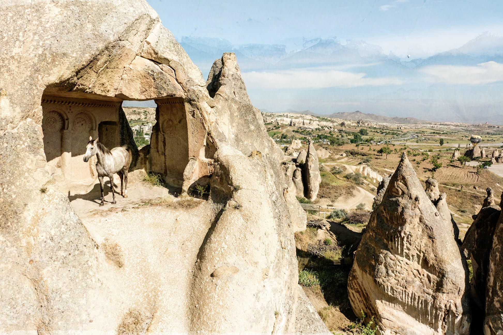 In the heart of Cappadocia’s carved stone dwellings, a lone horse steps into a centuries-old cave chapel, etched with Byzantine arches and sunlit silence. This hauntingly beautiful moment feels like a scene from myth—part history, part dream.