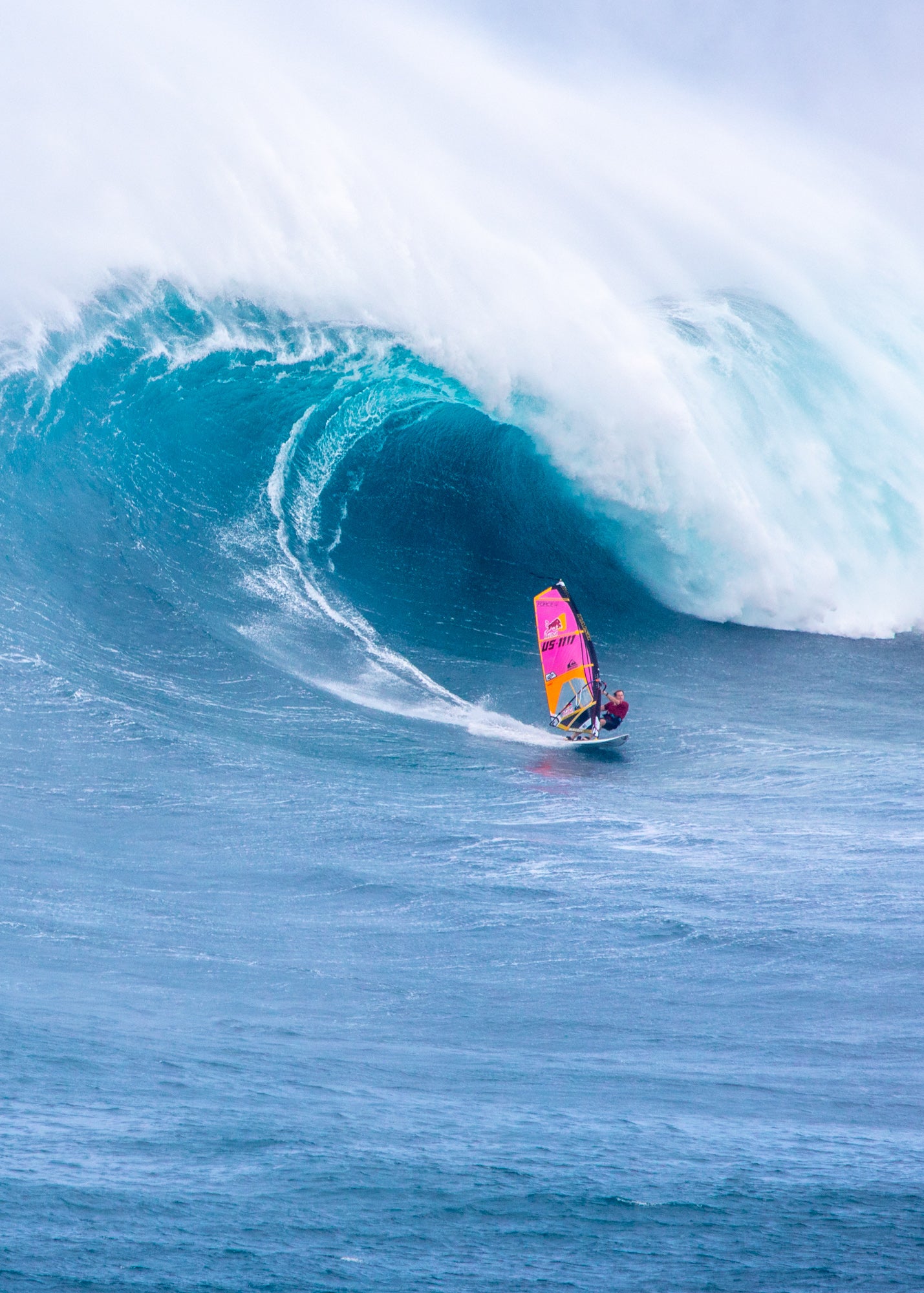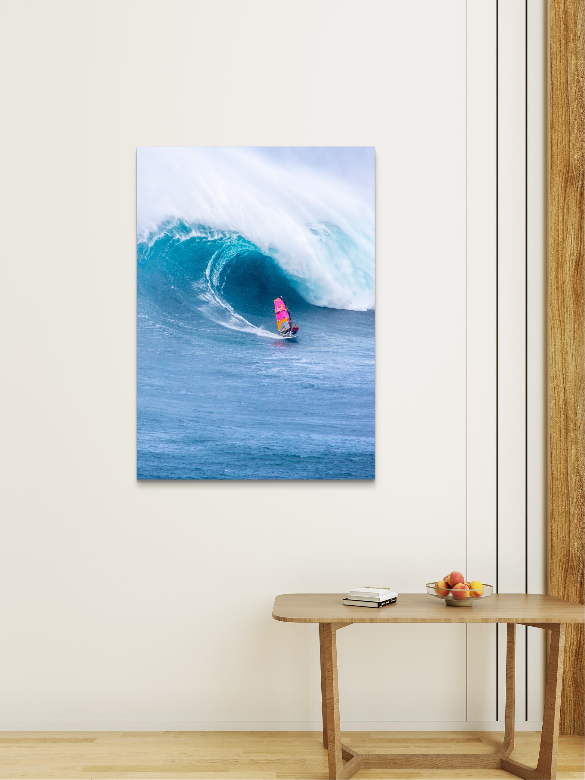 This image captures a daring windsurfer challenging the massive waves off the coast of Maui. The brilliant hues of the ocean, with deep blues and swirling turquoise, create a stunning and dynamic visual that commands attention. Perfect for homes or office spaces, this piece brings a sense of adventure and the untamed beauty of the ocean indoors, making it ideal for anyone who loves the sea and the thrill of water sports. Whether hung in a living room, office, or hallway, it adds a bold and captivating focal point that inspires the spirit of exploration and the power of nature.