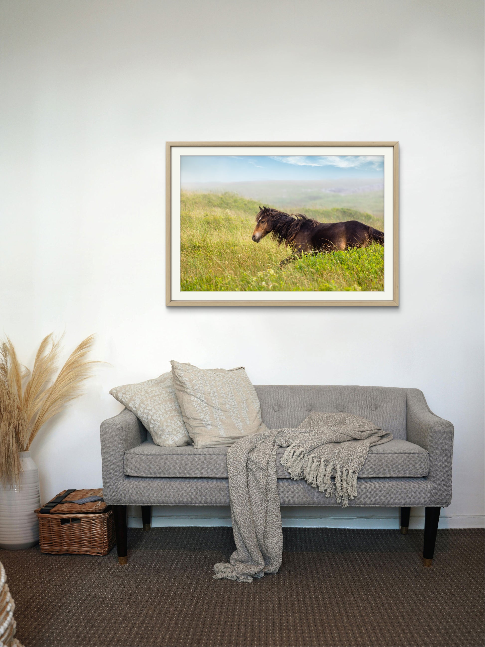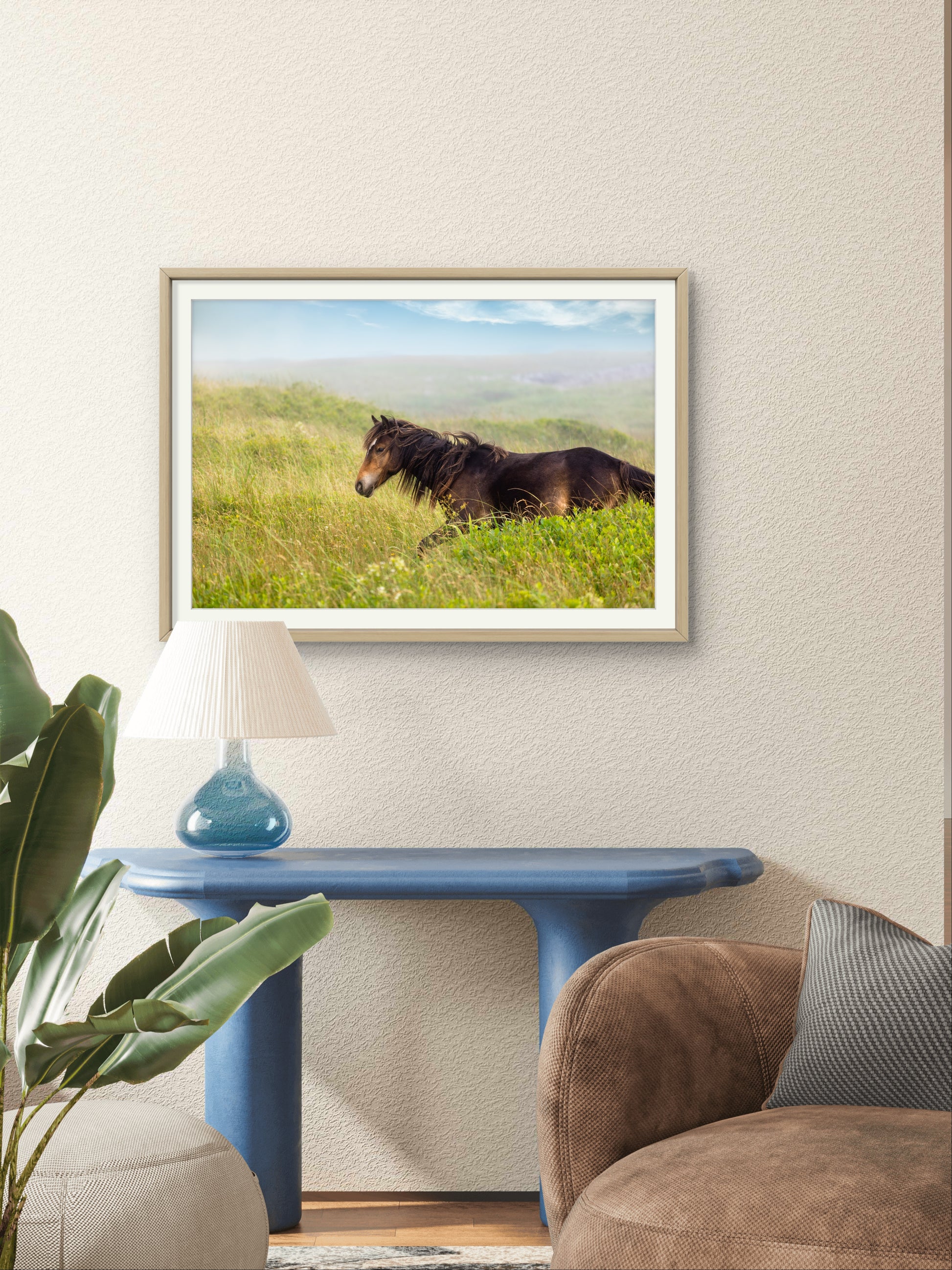 In a home or office setting, this piece adds an inspiring touch of wilderness and vitality, perfect for spaces that celebrate the natural world. The rich colors and dynamic energy make it an ideal focal point, inviting viewers to connect with the spirit of freedom and resilience. Whether placed in a living room, bedroom, or workspace, it brings an uplifting presence, embodying the unrestrained beauty of Sable Island's iconic wild horses.