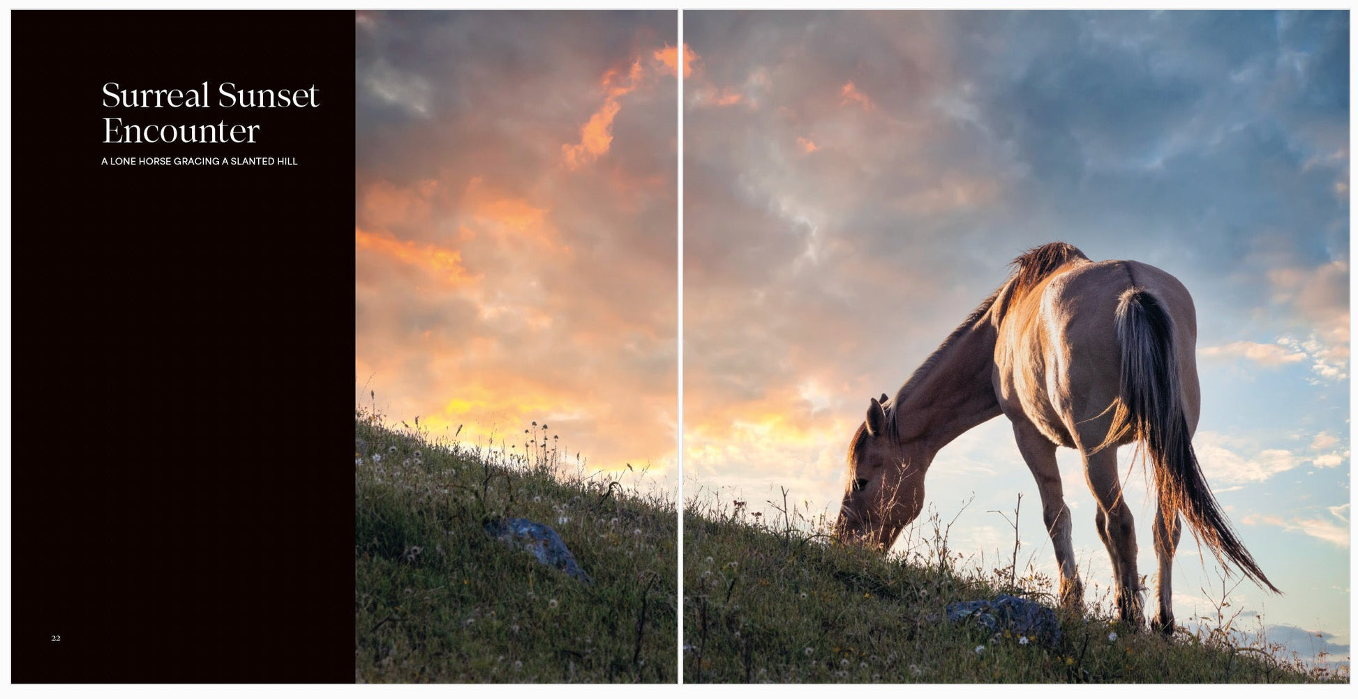 "Legends of the West" is not just a book; it's a visual journey into the heart of America's most iconic symbol of freedom and untamed spirit - the Wild Mustang. Designed as a 98 page high-quality thick paper, coffee table book, each page is adorned with my personally crafted fine art images that capture the raw, unbridled beauty of these majestic creatures.