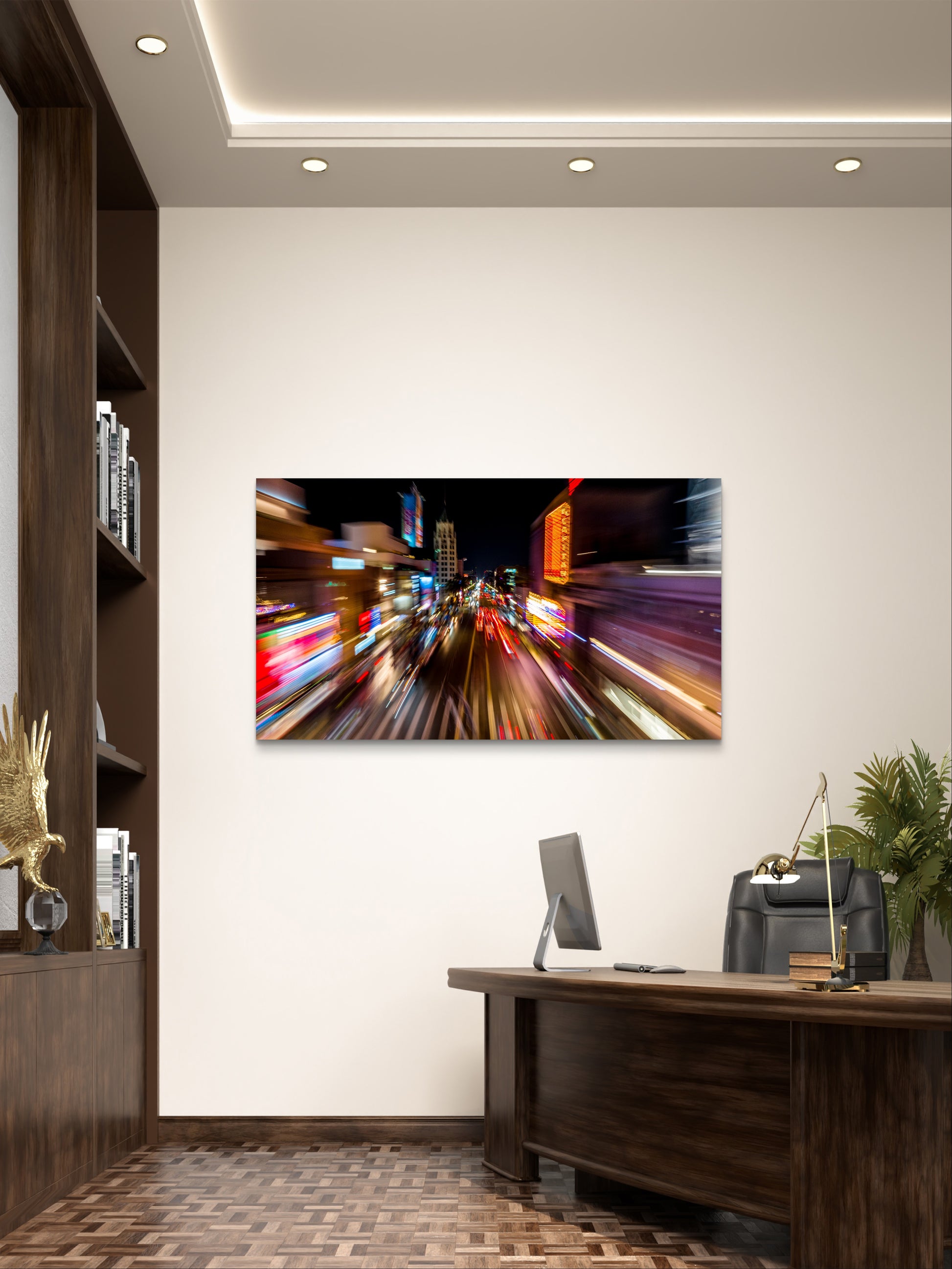 Perfect for modern and urban-themed interiors, this piece adds a burst of energy and vibrancy to any setting. Whether displayed in a living room or an office, it serves as a bold statement piece, inviting viewers to immerse themselves in the fast-paced allure of Hollywood nightlife.