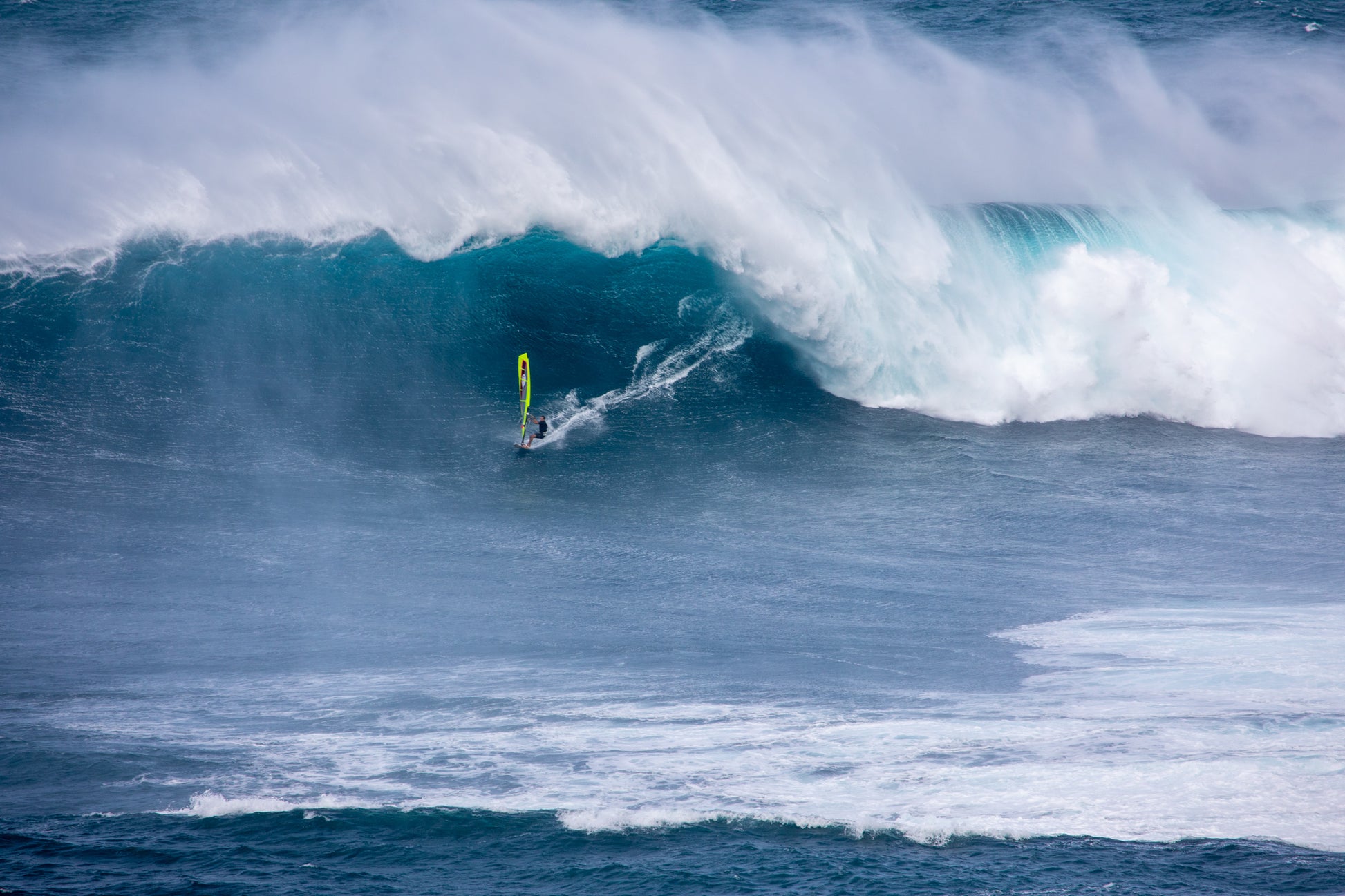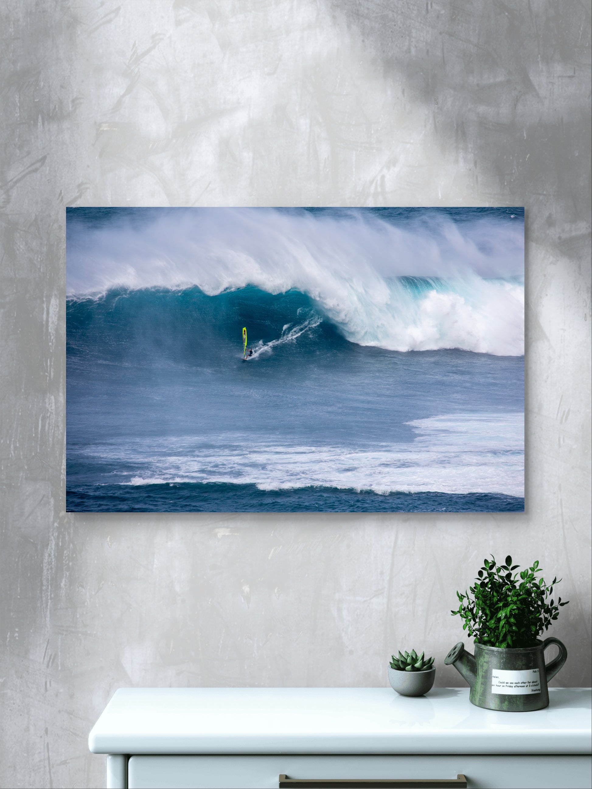 This powerful image captures a lone windsurfer tackling the immense waves of Maui, perfectly illustrating the blend of strength and finesse needed to face such natural force. The deep blue of the ocean, contrasted by the crashing white surf, creates a dramatic and visually stunning scene. Ideal for both home and office interiors, this artwork brings the vastness and energy of the ocean indoors. It’s a piece that draws attention and sparks conversation, perfect for spaces that aim to capture the spirit of adventure and the allure of the untamed sea.